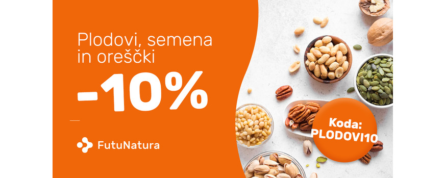 Plodovi, semena in oreščki imajo številne raznolike koristne učinke. Izkoristite dodatni 10% popust na vse plodove, semena in oreščke iz naše ponudbe!