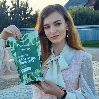 BIO Морингата на прах от Purely Nutrition е извлечена от изсушени листа на моринга в съответствие с насоките за биологично производство. Впечатлява с леко киселия си вкус, характерен аромат и красив зелен цвят, а освен това е популярна с високото си съдържание на диетични фибри и протеини, които допринасят за усещането за ситост и подпомагат разнообразната диета.