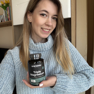 „Цели три форми на магнезий, обединени в една формула, с която получавам почти 100 % от препоръчителния дневен прием на магнезий.“